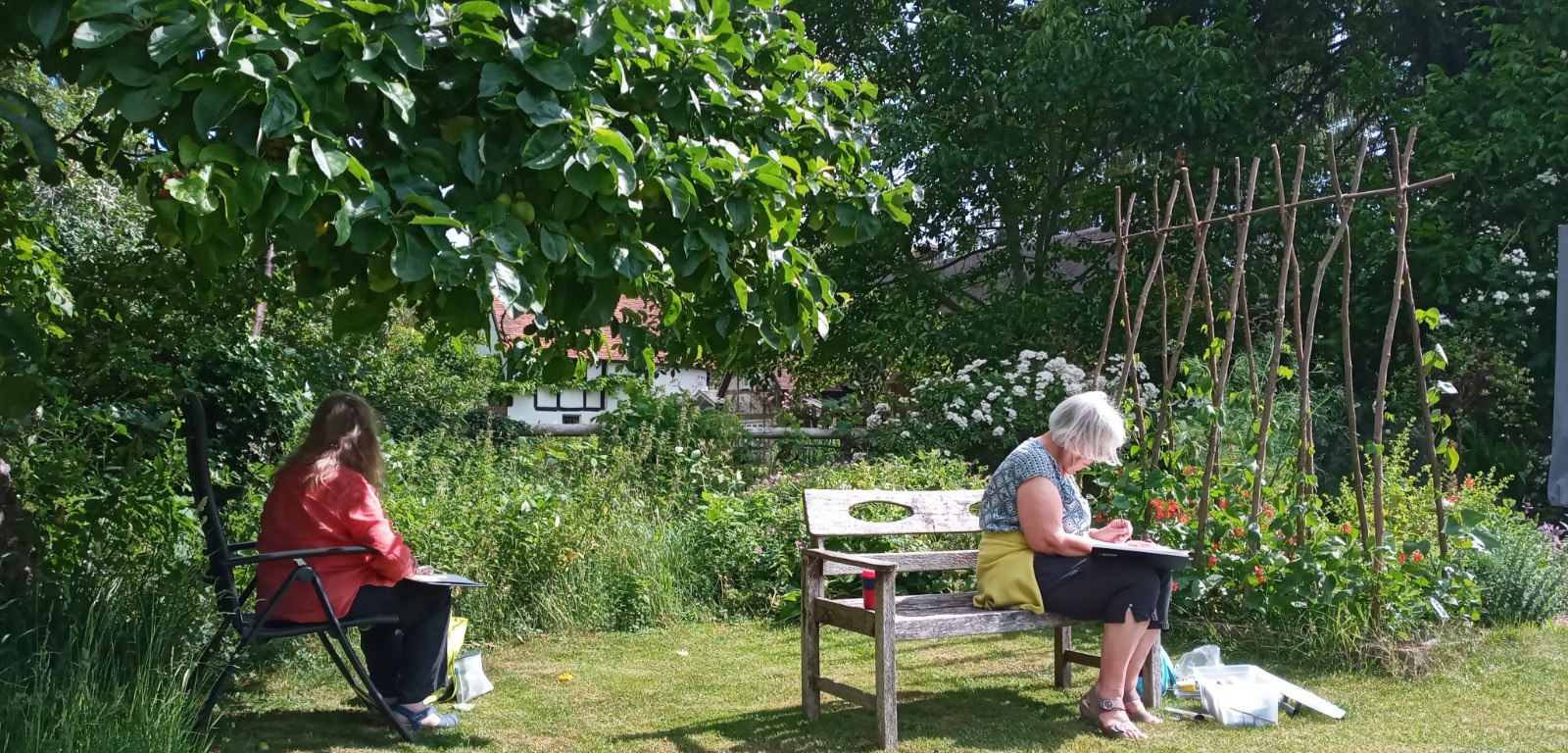 Brightwell Art Club - members holding an outdoor, painting en plein air session